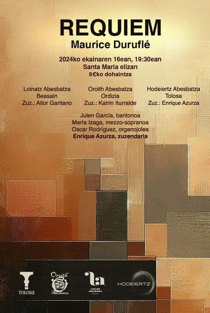 Jun 16 Requiem Maurice Duruflé 7:30 pm Santa Maria eliza Tolosa Andre Maria plaza 2, Tolosa Detalles de Evento Cómo llegar