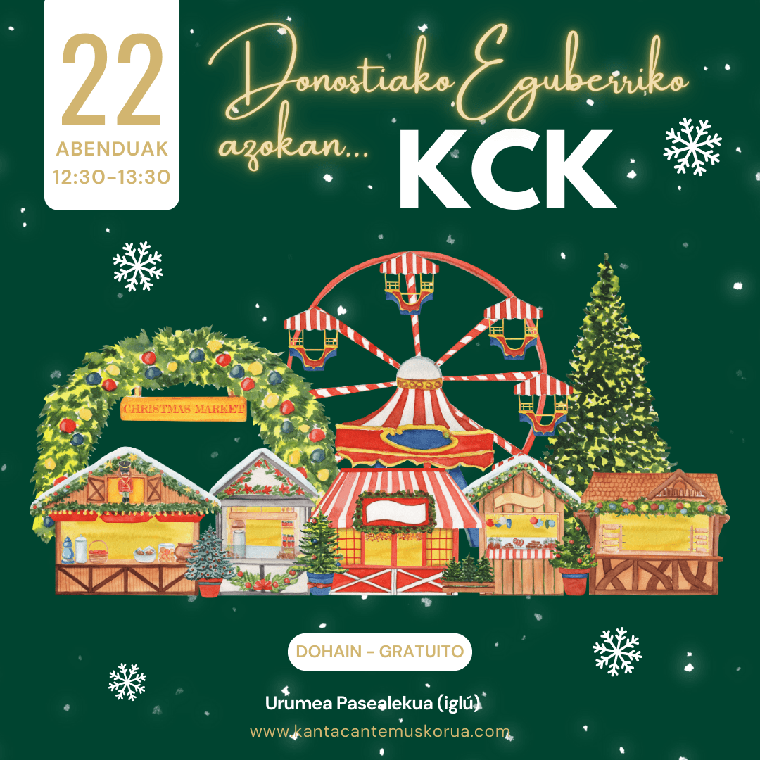 Dic 22 DONOSTIA GABONETAKO AZOKA – KCK 12:30 pm Urumeako Pasealekua Urumeako Pasealekua, Donostia Detalles de Evento Cómo llegar