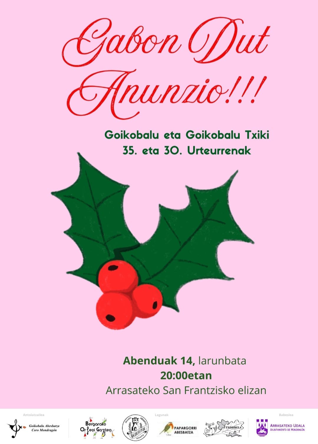 Dic 14 Gabon dut anunzio!!! 8:00 pm Arrasateko San Frantzisko Eliza Arrasate - Mondragón Detalles de Evento Cómo llegar